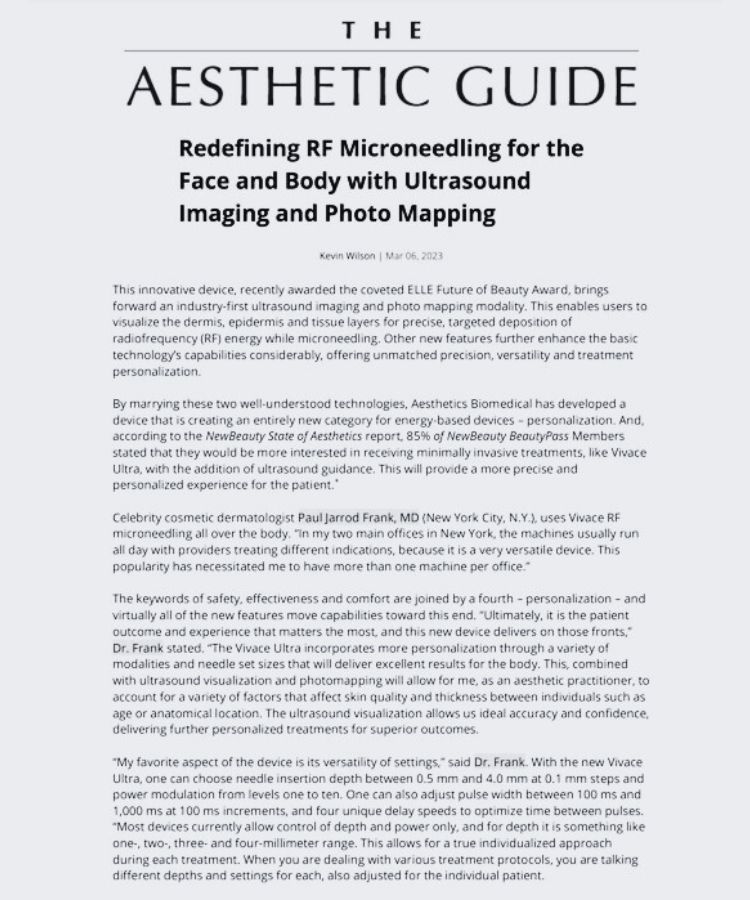 With the popularity of energy delivered microneedling device’s ability to stimulate proteins like collagen and elastin on the face and neck, their regenerative capabilities are now being offered all over the body with the evolution of our gold standard technologies. At PFRANKMD, we offer Virtue RF, Vivace, and Morpheus 8 devices – each with their own unique applications to suit each patient’s various needs throughout the face and body.