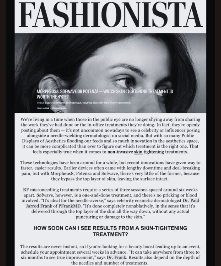 👉 Schedule a consultation with our team at PFRANKMD to learn if Ultherapy Prime at our West Village or Upper East Side office to determine if this is the right treatment for you.