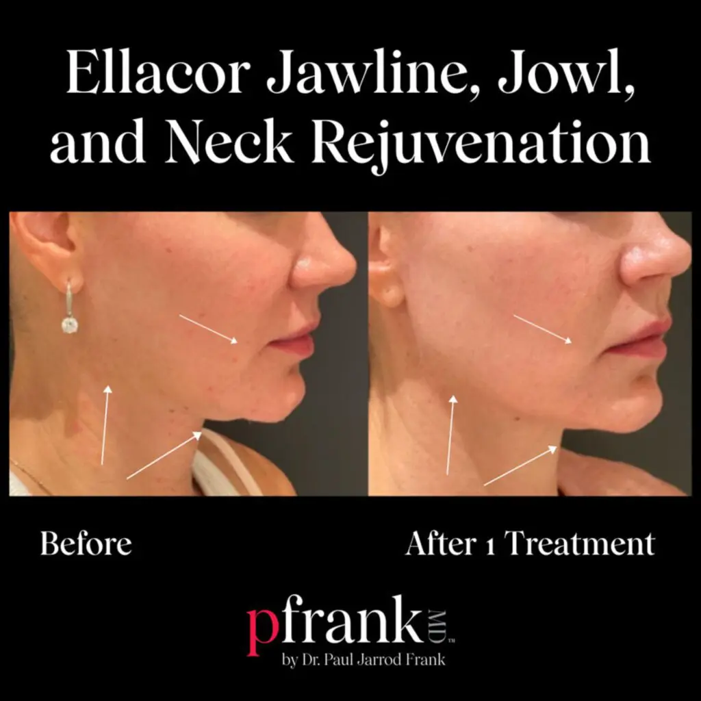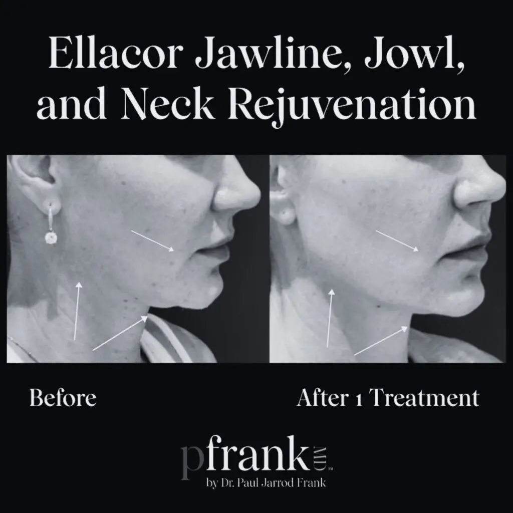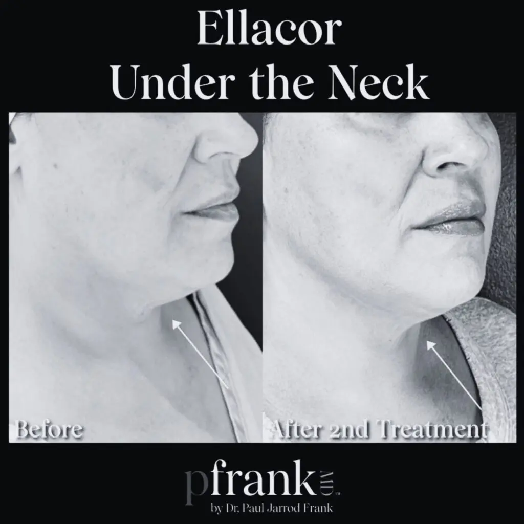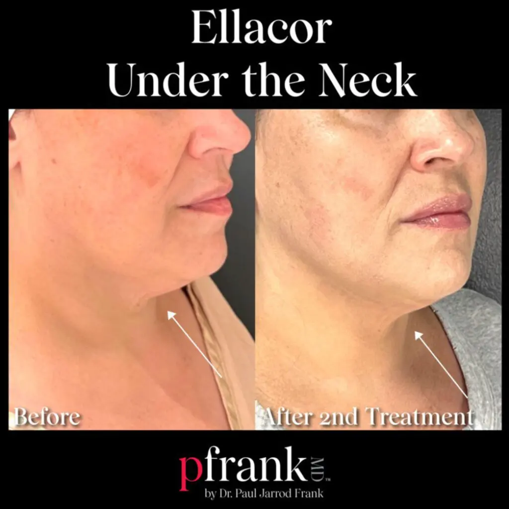Look at these fantastic results achieved by Ellacor after just three treatments to address neck laxity.