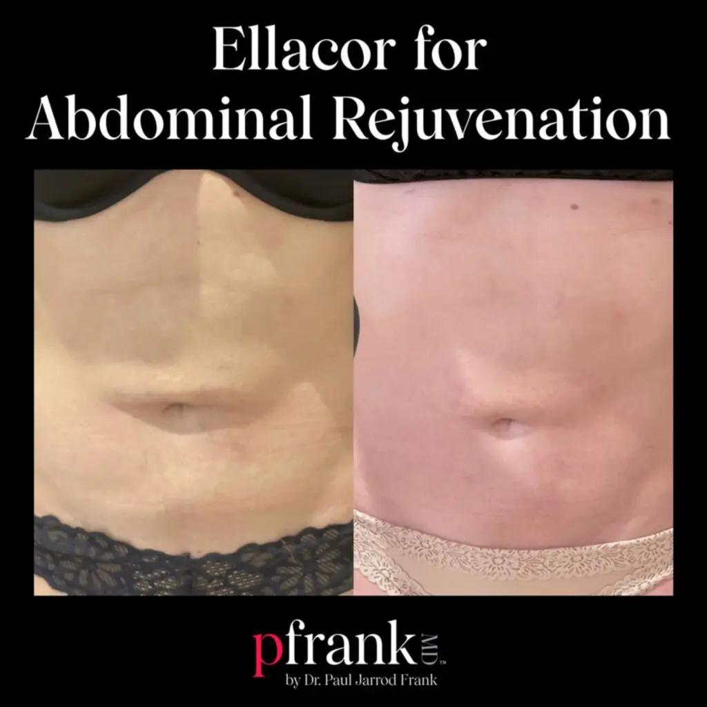 Results shown are after a single Ellacor treatment, a great option for post-pregnancy skin laxity and patients looking to tighten and smooth without downtime from surgery.
